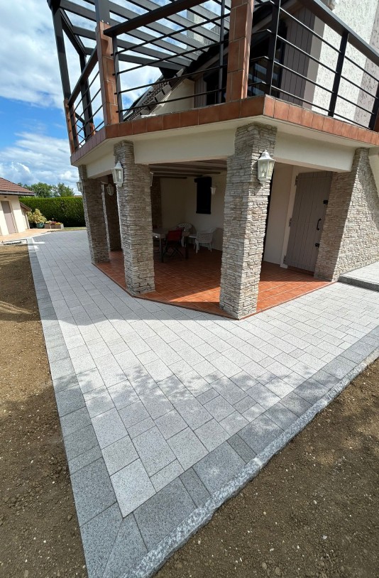 La conception de cours et terrasses à Chambéry nécessite une étude précise du terrain, de la pente et des usages prévus. ANTHONY FONTAINE PAYSAGISTE, paysagiste à Chambéry, définit chaque projet selon vos besoins : accès au garage, zone de circulation, espace de détente ou prolongement de la maison. Nous analysons le sol et sélectionnons des revêtements adaptés, qu’il s’agisse de pavé, de béton décoratif ou de matériaux naturels.