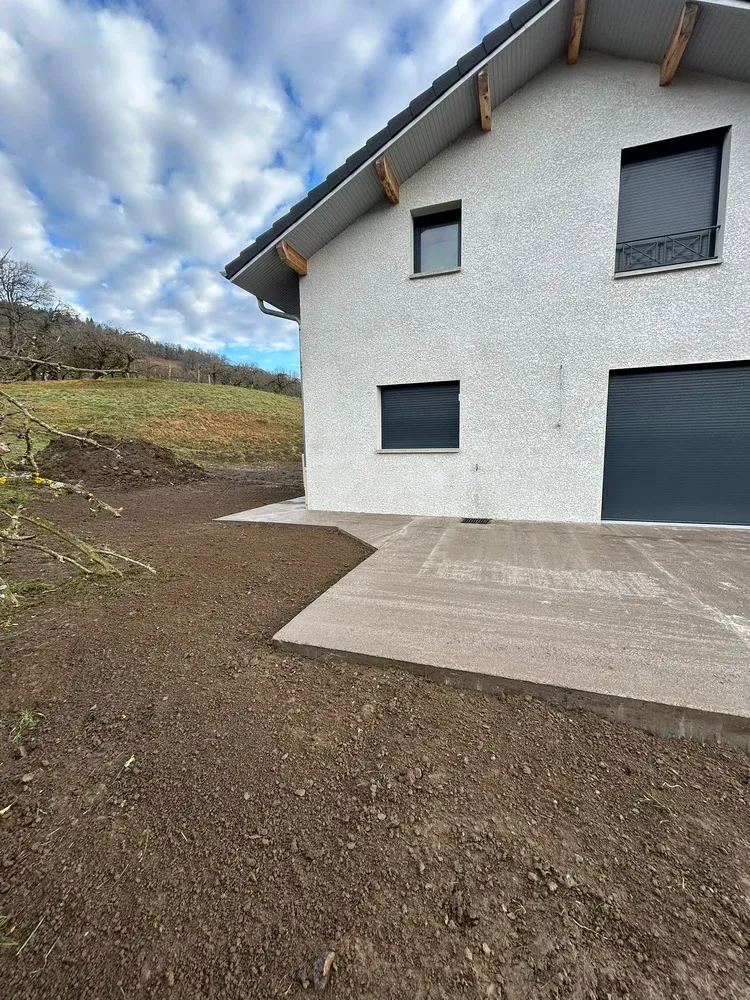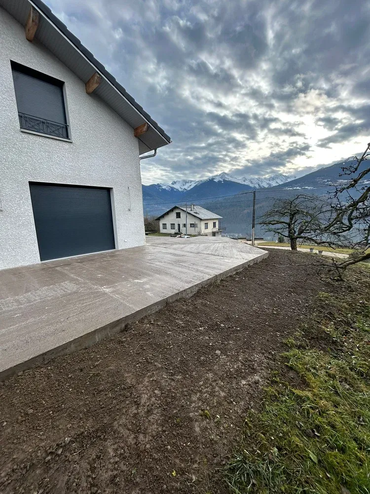 Chez ANTHONY FONTAINE PAYSAGISTE, nous sommes fiers de vous présenter notre dernière réalisation à La Chapelle Blanche : la construction d'une dalle en béton pour une terrasse. Située au cœur de notre zone d'intervention principale, Chambéry, cette réalisation met en lumière notre expertise en aménagement extérieur et en création de terrasses.